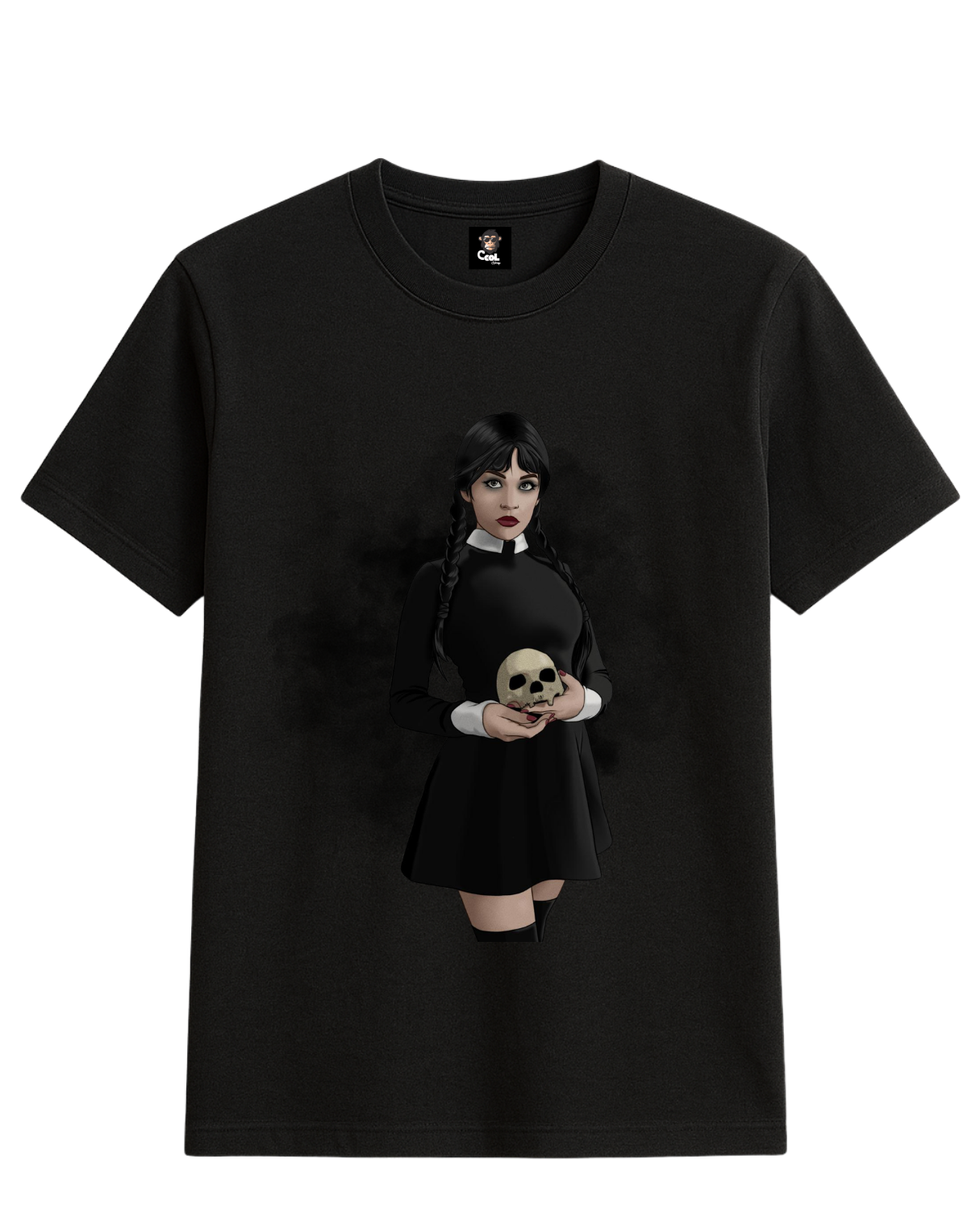 Designed with hauntingly detailed skull artwork inspired by the Wednesday aesthetic, this graphic is dark without being edgy, eerie without being try-hard — a perfect balance of macabre and wearable art that Morticia herself would approve.